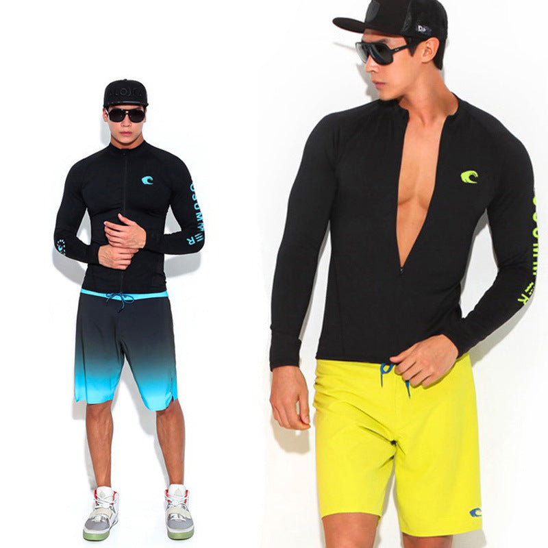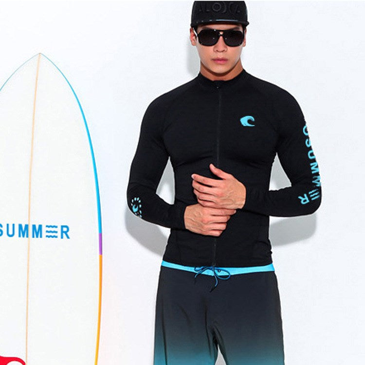 Áo Bơi Nam Khoá Kéo Dài Tay OS Chống Nắng Giảm Đen Da Chống Sứa Đen Neon