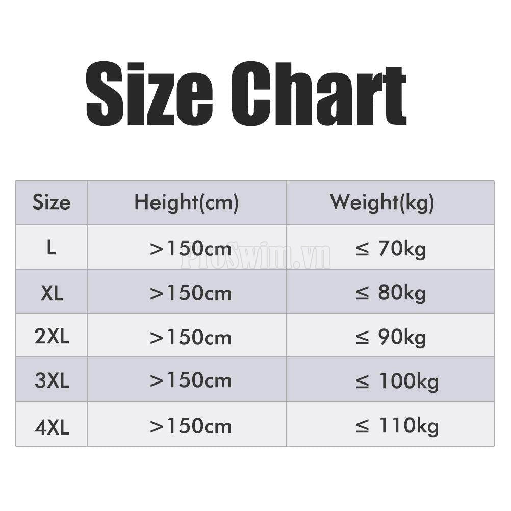 Phạm vi sử dụng cho người trưởng thành dưới 110 kg ( có chia size)