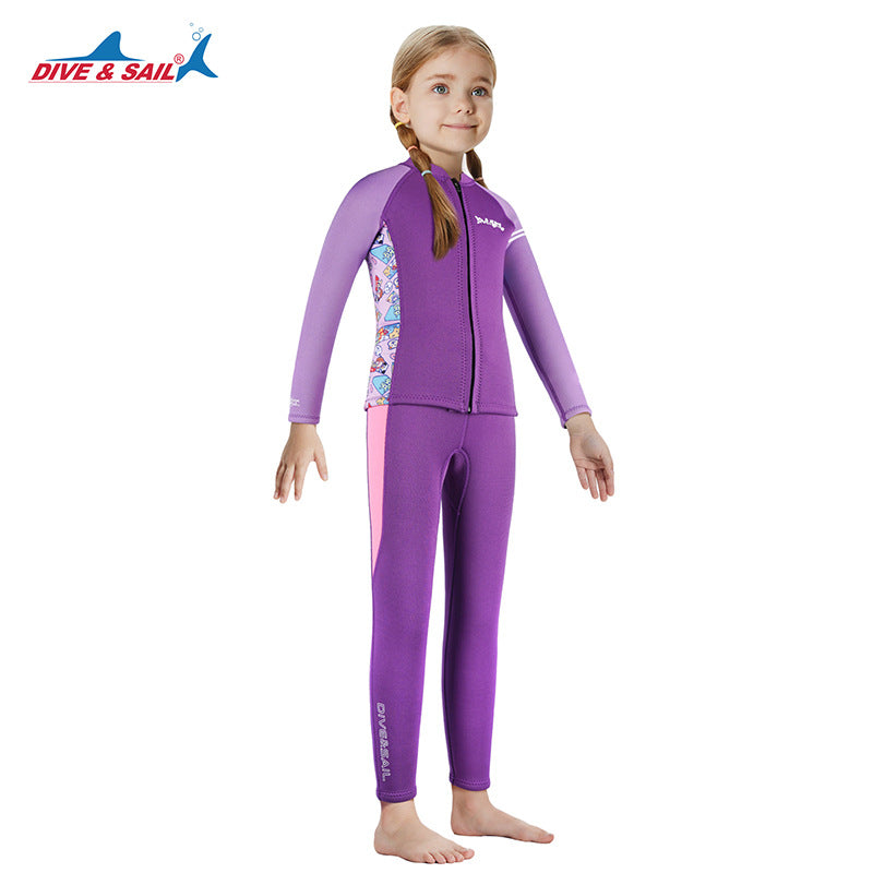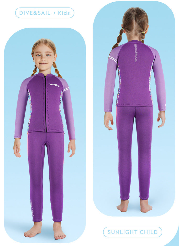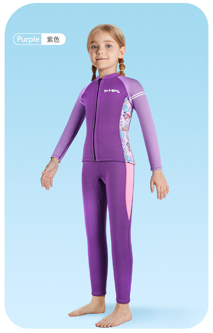 Bộ Bơi Giữ Nhiệt Trời Lạnh Cho Bé Gái Dạng Rời Dày 2.5mm WS587 Tím