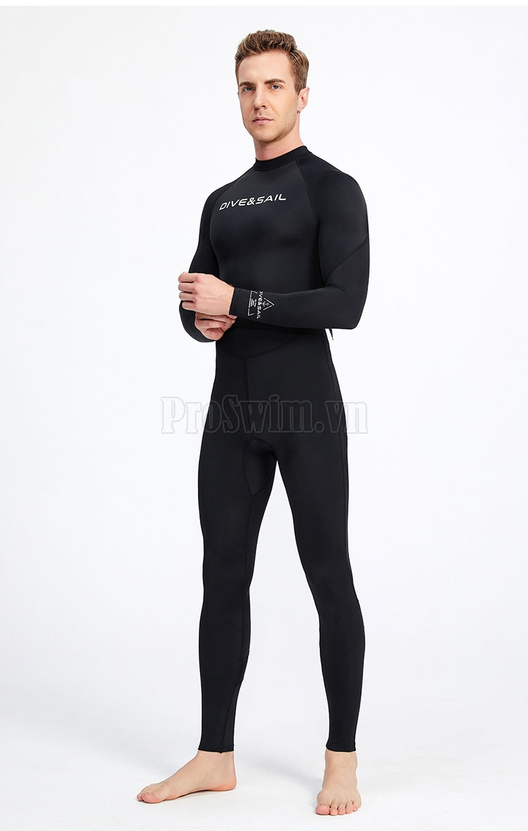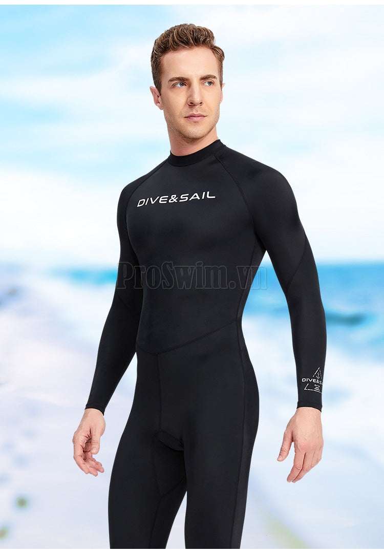 Bộ Bơi Lặn Nam Chống Nắng Chống UV Liền Thân DS069 Đen Tuyền