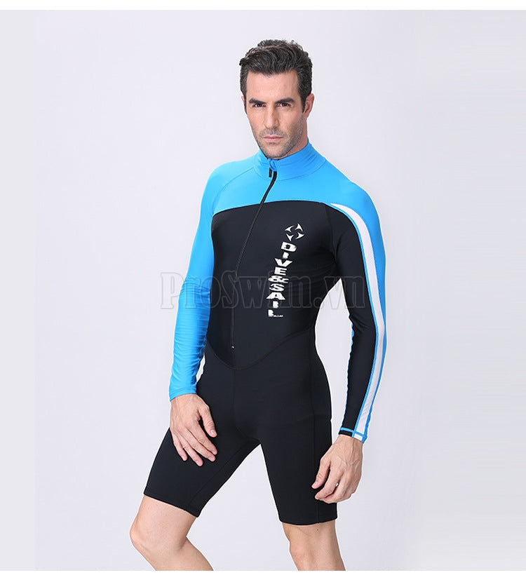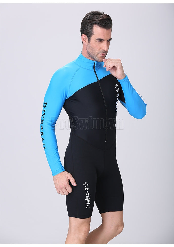 Bộ Bơi Nam Liền Thân Giữ Nhiệt Dày 1.5mm Xanh Dài Tay