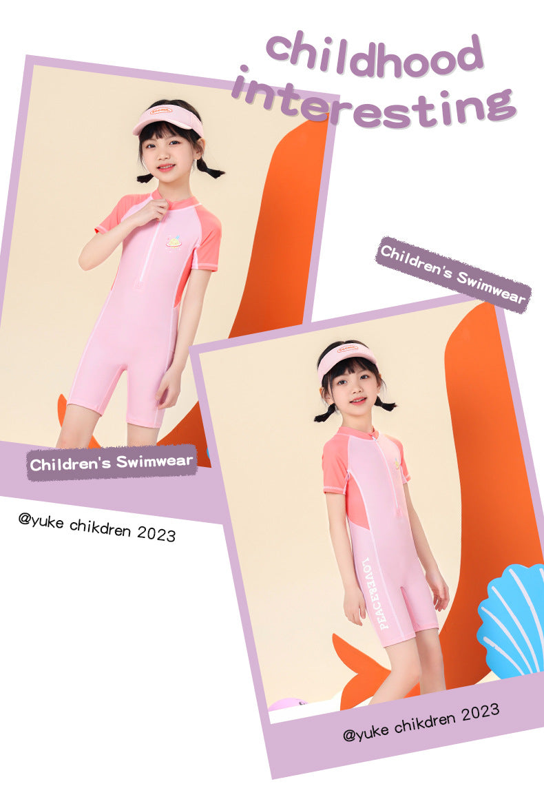 Bộ Bơi Cho Bé Gái Liền Thân Cộc Tay Y22020 Hồng Cam