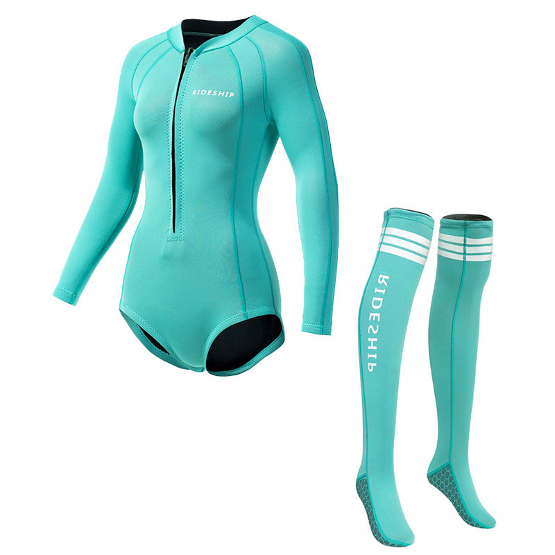 Đồ bơi giữ nhiệt giữ ấm cho nữ - Bộ Lặn Biển Dày 2.0mm Cho Nữ Liền Thân Dài Tay Kèm Tất Lặn Dài Như Hình
