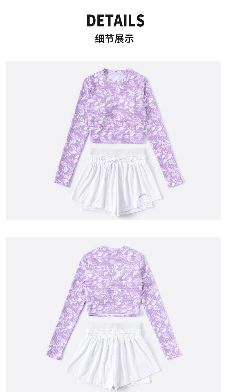 Đồ Bơi Nữ Quần Đùi Dạng Rời Áo Dài Tay Trắng Tím