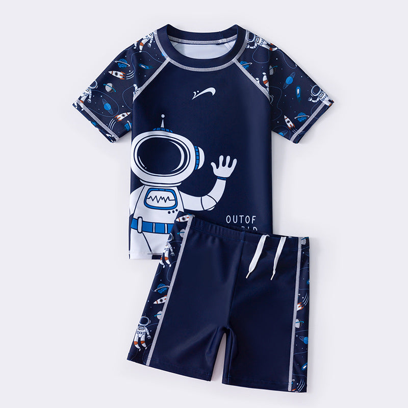 Quần Áo Bơi Cho Bé Trai Dạng Rời Cộc Tay Phi Hành Gia Đen Xanh